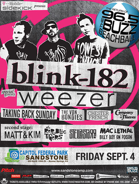 96.5 The Buzz and Capitol Federal Park at Sandstone announces Buzz Beach Ball featuring Blink-182, Weezer, Taking Back Sunday and many more.