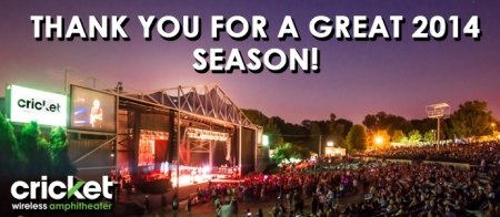 Wow, what a year! From our season opener with The Lumineers to our last show of the summer with Mumford & Sons, 2013 was a year to remember at Cricket Wireless Amphitheater! We would like to take a moment to thank you, the fans, because you are the ones who makes the music world go 'round. Our season may be over, but we are already working hard to bring you another great year in 2014. Keep an eye on our event calendar, where new shows will be posted as soon as they are announced.