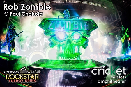 After spending the summer touring with Rockstar Mayhem Festival, Rob Zombie made a stop here in Kansas City, bringing Machine Head, Amon Amarth, and Children of Bodom with him. It wouldn't be a Rob Zombie show without pyro, video screens, and props, but this show was definitely a step above the rest!